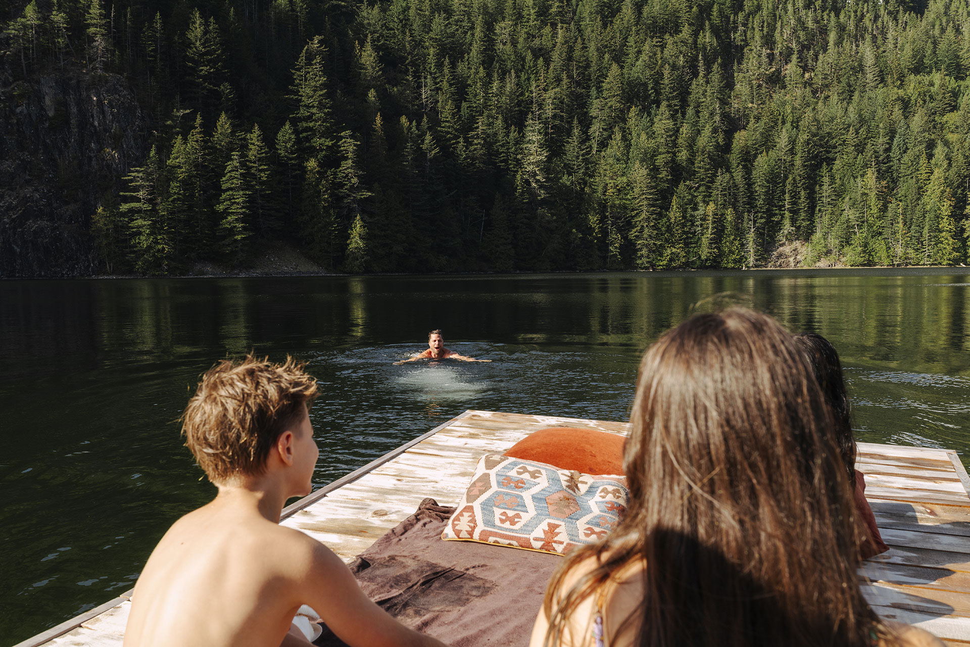 A 10-minute drive apart, the Main House and Lake Cabin together welcome up to twelve adults and four children in complete privacy.