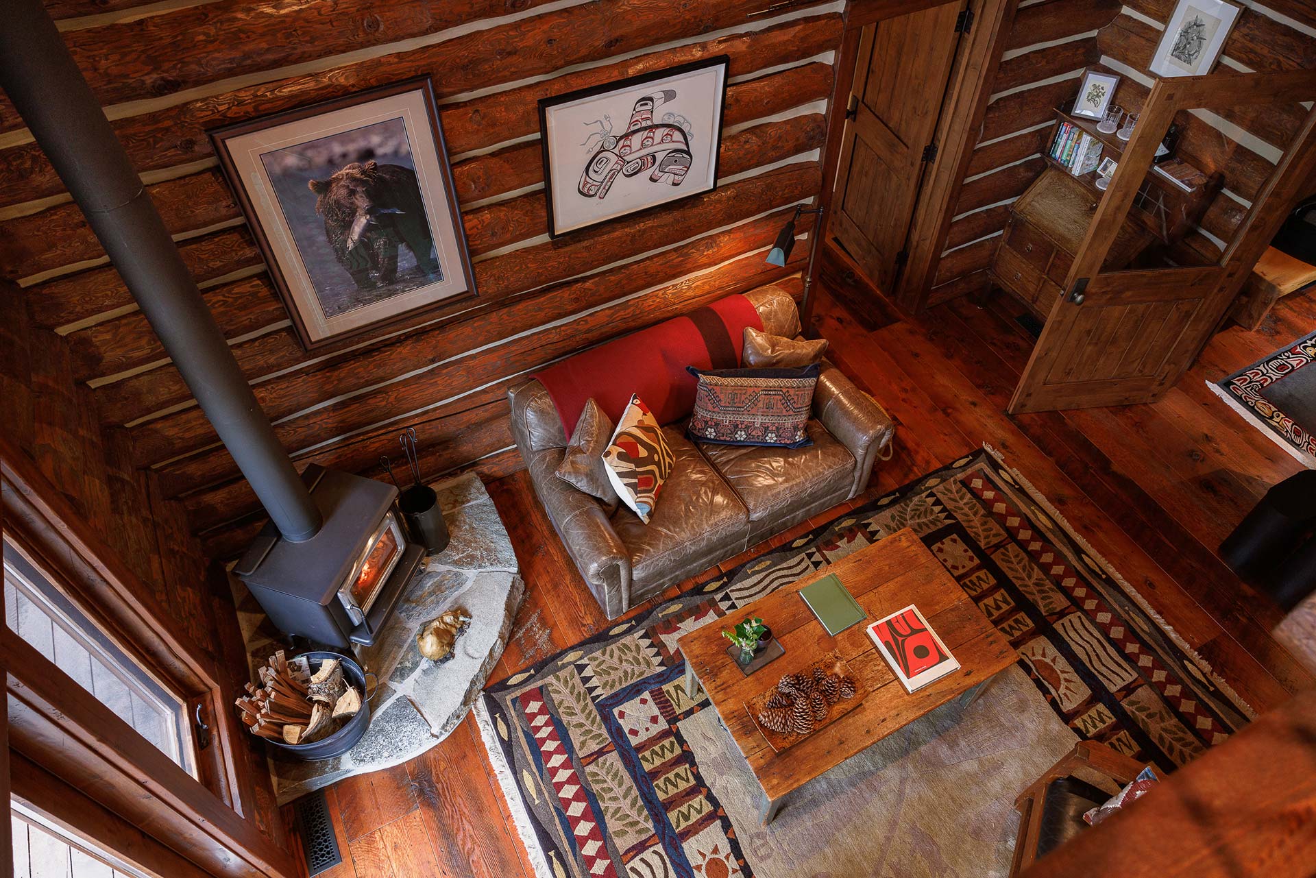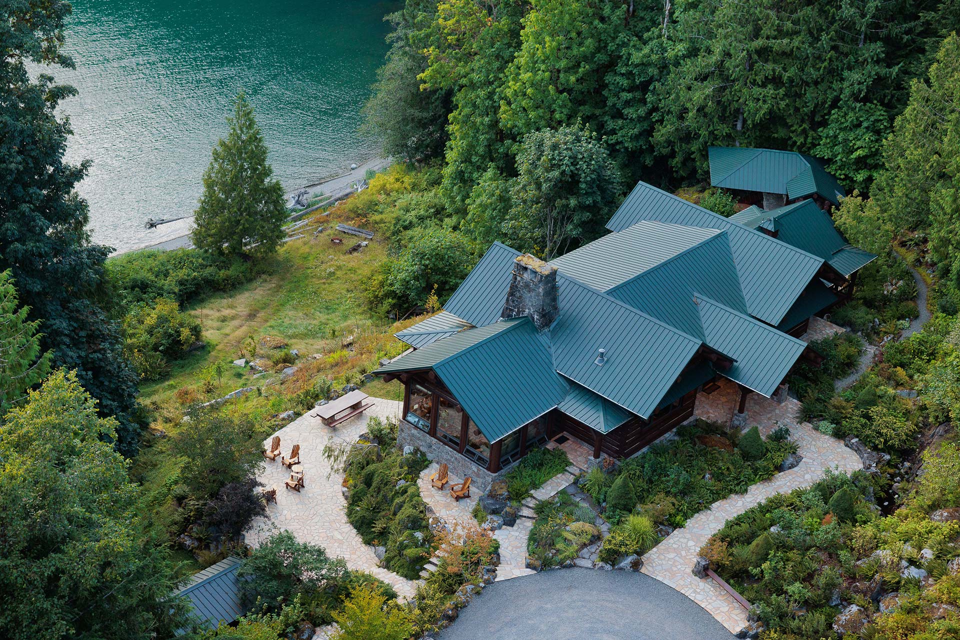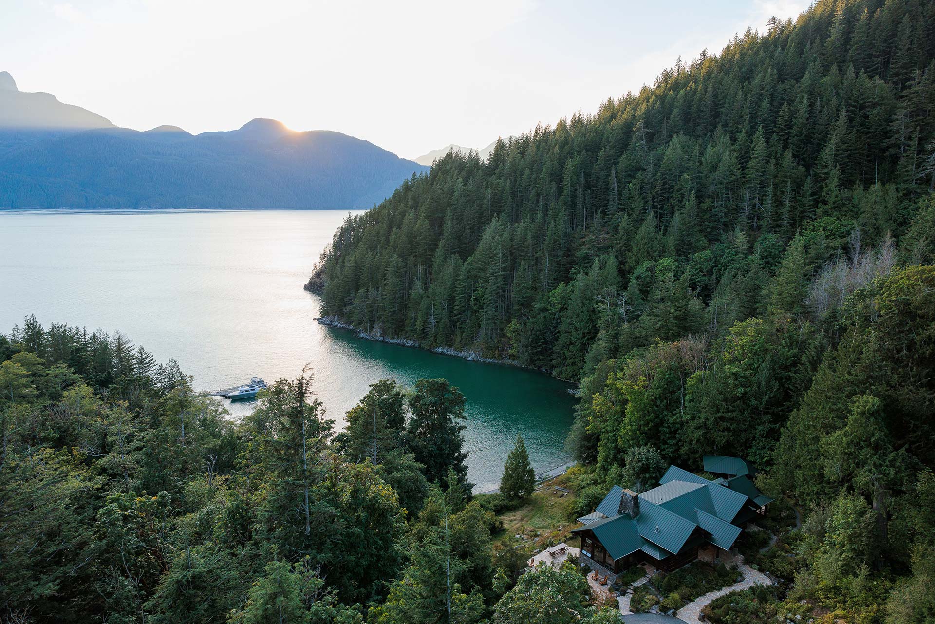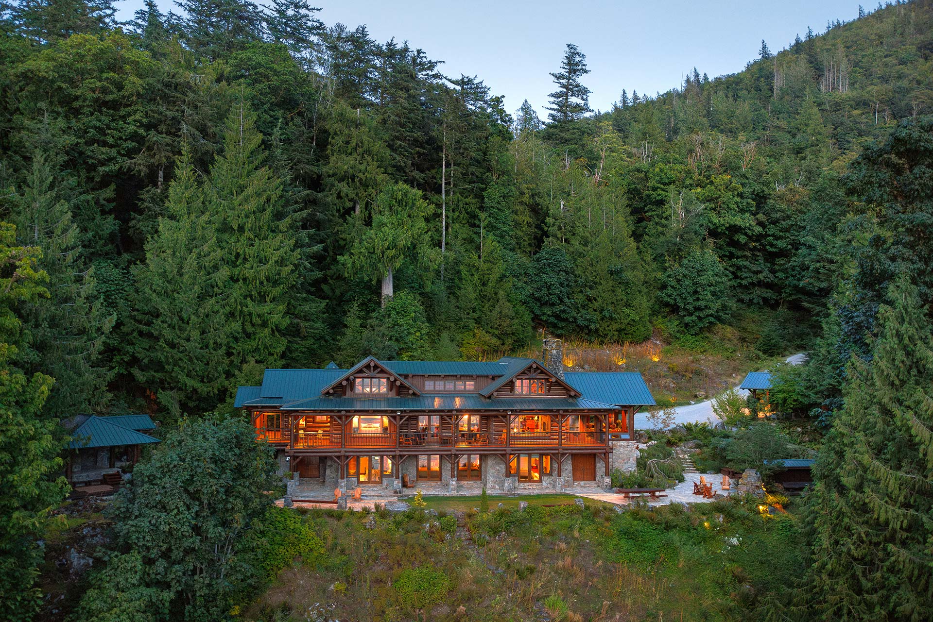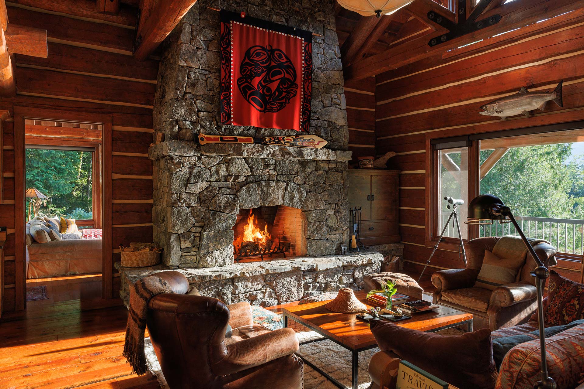 Built as a traditional log house of red cedar facing Bute Inlet and Estero Peak, the Main House balances rustic authenticity with modern comfort.
